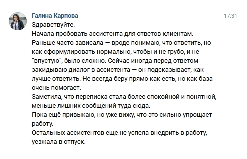 Подсказывает, что ответить клиенту в любой ситуации — от первого сообщения или звонка до записи на показ.