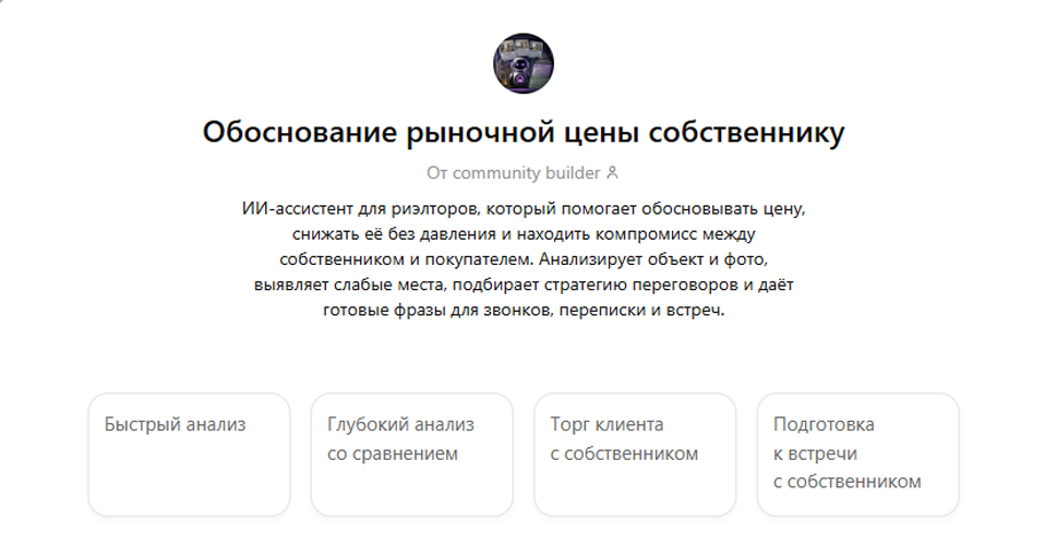 Соберёте ассистента, который помогает быстро создавать понятную и цепляющую карточку объекта, для клиента после показа.
